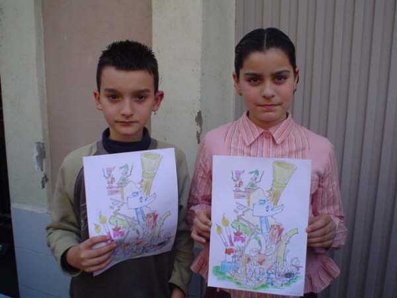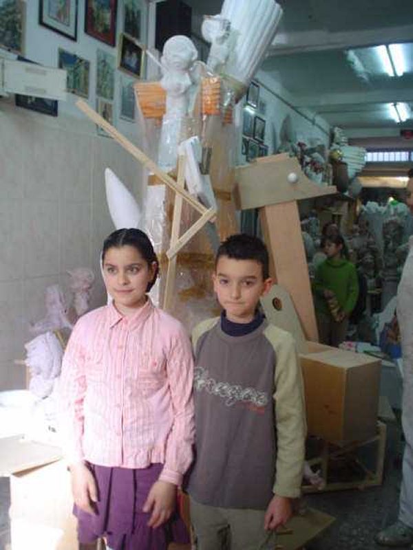 06/06/2006.- Entre los bocetos presentados por el artista José Ángel Azpeitia, es elegida para la falla grande el titulado «Negocis Bruts», y para la falla infantil, es elegido el boceto presentado por el artista Juanjo García, con el lema «Pincellades Borumballa».